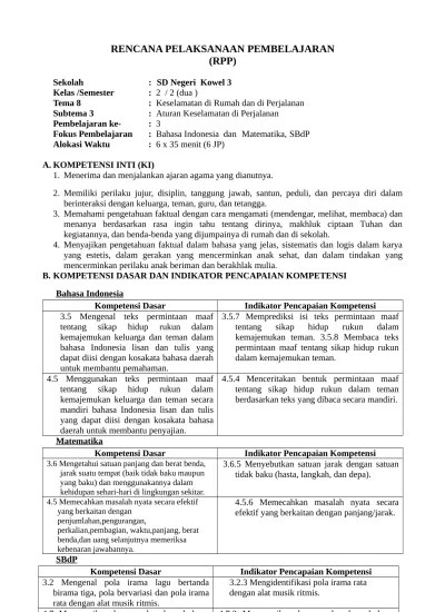 Rpp tematik kelas 2 sd revisi 2020 semester 1 dan 2 format 1 lembar. Kami bagikan kepada bapak/ibu guru untuk rpp kelas 2 tema 8 keselamatan dirumah dan perjalanan kurikulum 2013 revisi 2017. Download format rpp k13 kelas 2 sd tema 8: Subtema 1 aturan keselamatan di . Pembelajaran kelas 2 sekolah dasartematik kurikulum 2013tema 8 (keselamatan di rumah dan perjalanan)subtema 4pembelajaran 3link karaoke .